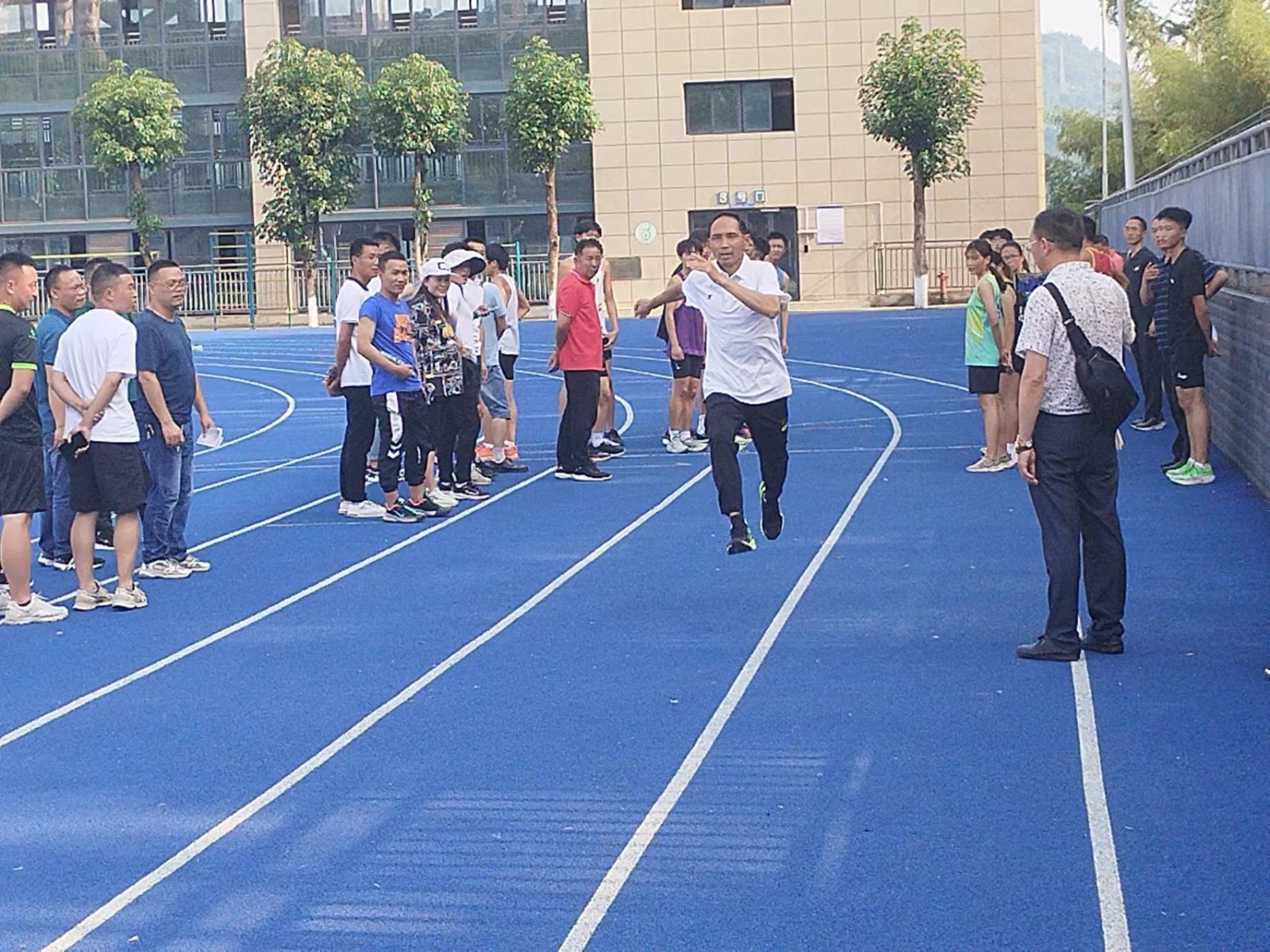 当天,王志成前往忠县中学,对该校田径队学生进行示范训练,分享了自身运动经历、国家队经历,鼓励同学们制定目标,刻苦训练。