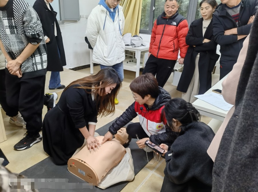 在心肺复苏的实践练习环节,培训老师演练救援步骤及方法,并用人体模型示范全过程。参训学员积极主动学习,认真参与实操。培训老师及时纠正学员错误,确保他们快速、准确掌握急救基本技术。