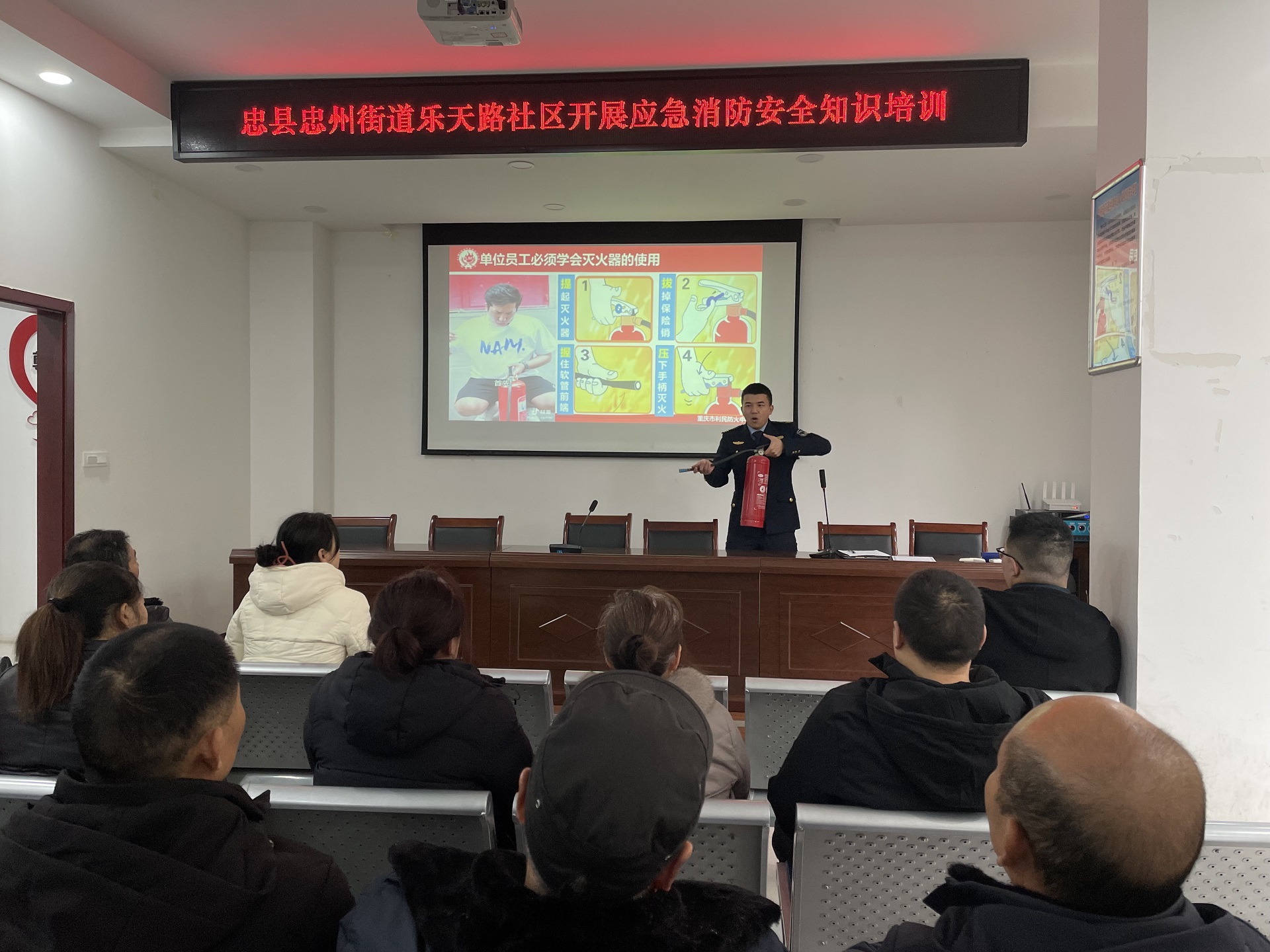 【图文快讯】忠州街道乐天路社区开展消防安全应急知识培训活动
