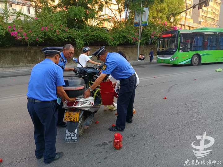 摩托车侧翻 城管员帮忙