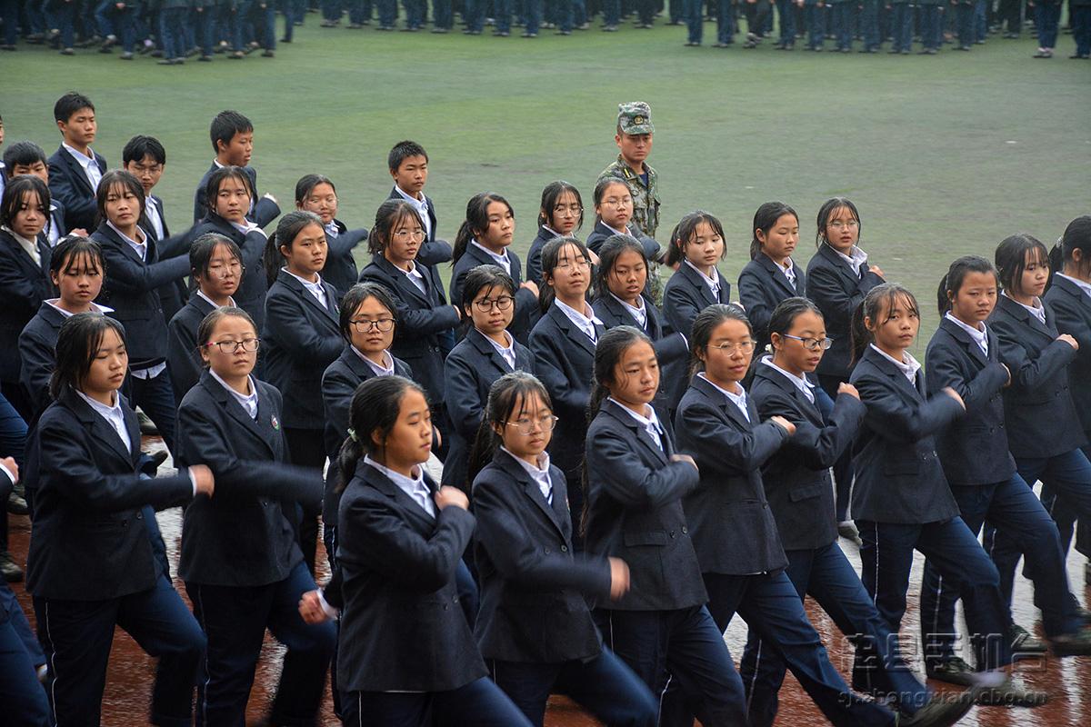 拔山中学举行高2023级新生军训闭营暨汇报表演仪式