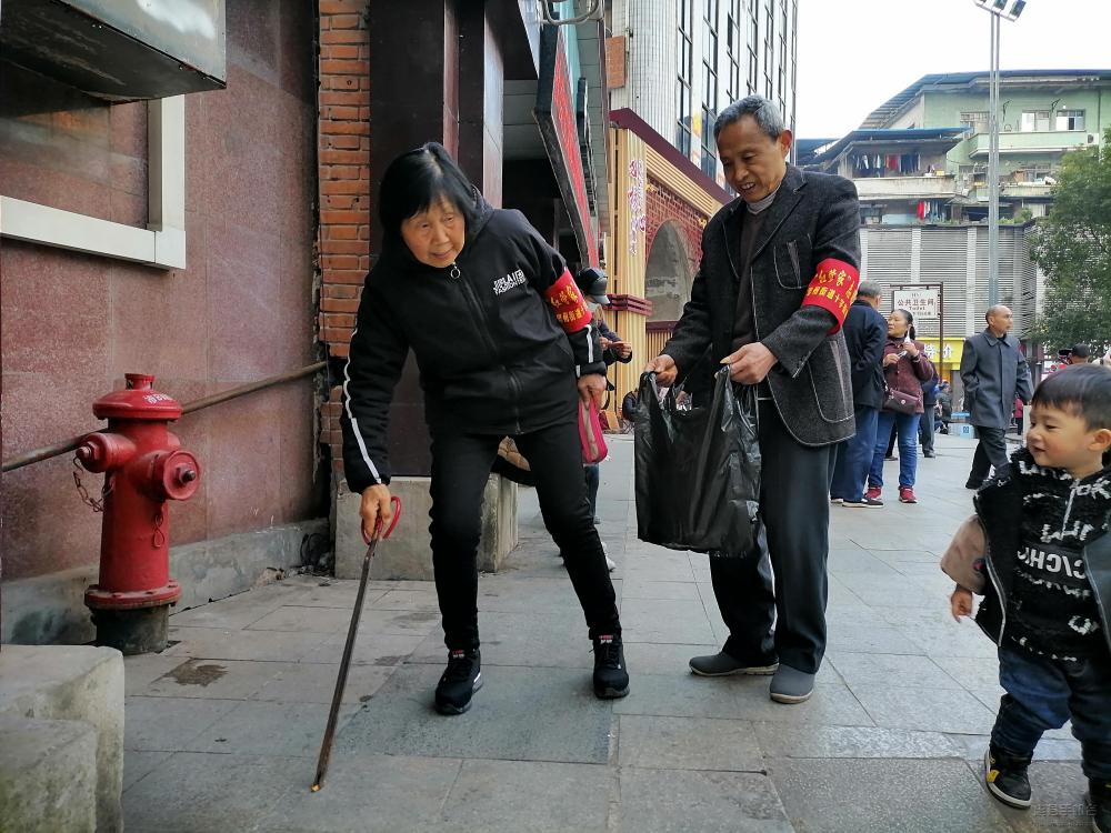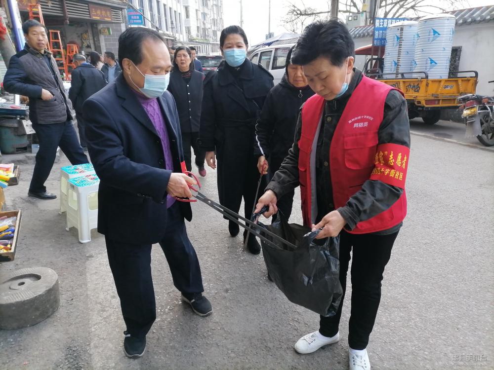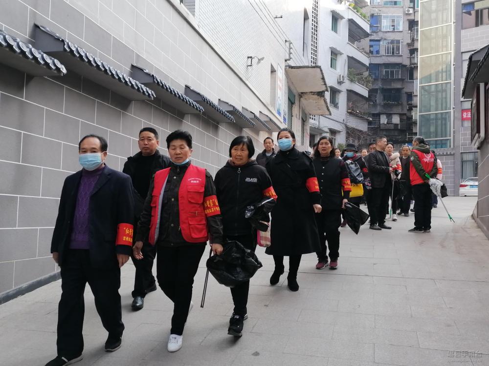 2月22日,农历正月十一,大街上还是浓浓的节日气息,忠州街道十字街社区的党员志愿者在大礼堂广场周边开展环境整治,助力文明城市整改提升工作。