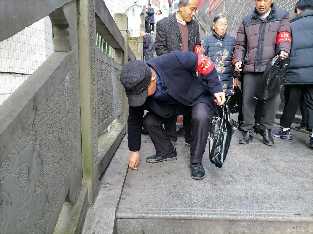 26名党员志愿者戴着“红管家”的红袖标,拿着垃圾袋、钳子等工具,对辖区内的居民小区、活动广场卫生进行彻底清理。活动中,每名党员都俯下身、弯下腰,细细地捡,慢慢地拾,连烟头、碎纸、落叶等细小垃圾都不放过。对一些不好捡拾的垃圾,志愿者放下手中的工具,徒手捡拾。