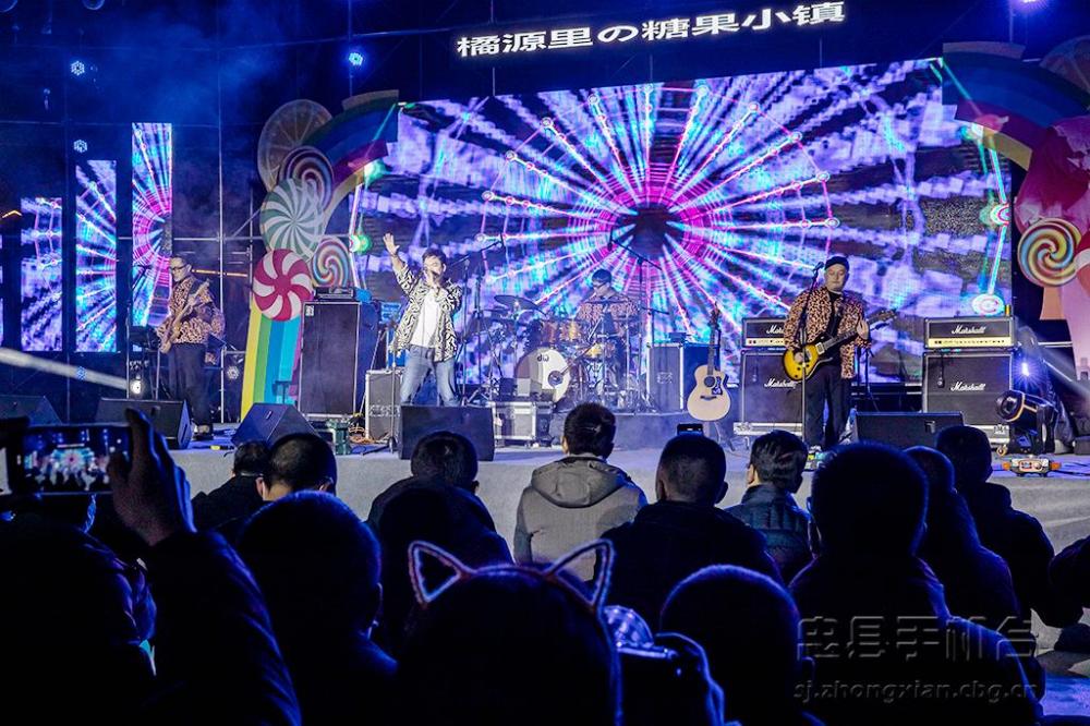 活动现场,来自重庆主城的民谣歌手、摇滚及电音乐队激情表演,把富有地域民族特色的歌谣奉献给现场观众,让众多游人一边领略橘源里の糖果小镇的浪漫风情,一边享受摇滚音乐的独特魅力。
