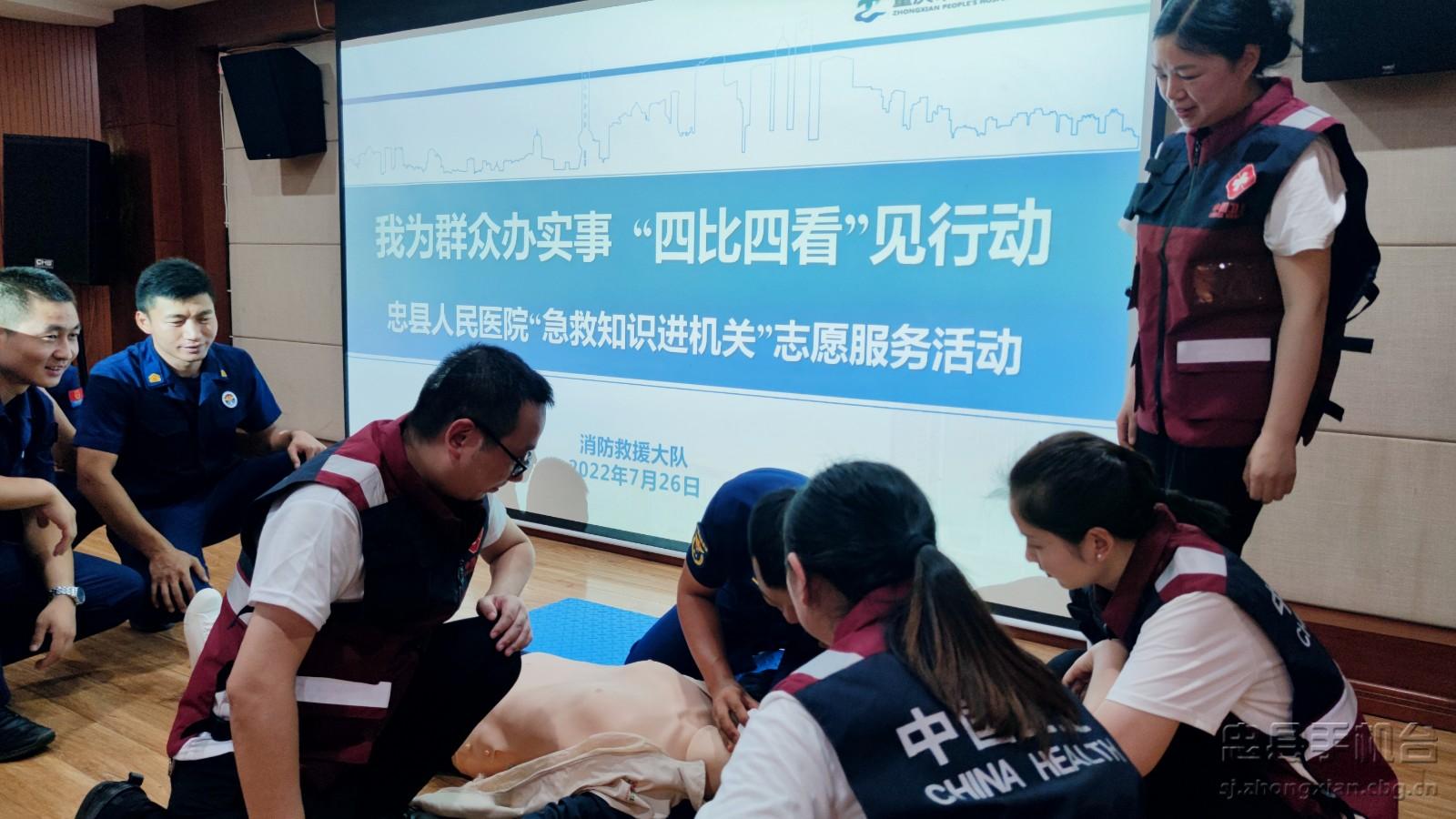 7月26日,县人民医院党员、志愿者走进县消防救援大队,开展“喜迎二十大·忠诚保平安”主题党日活动,共建平安忠州。
