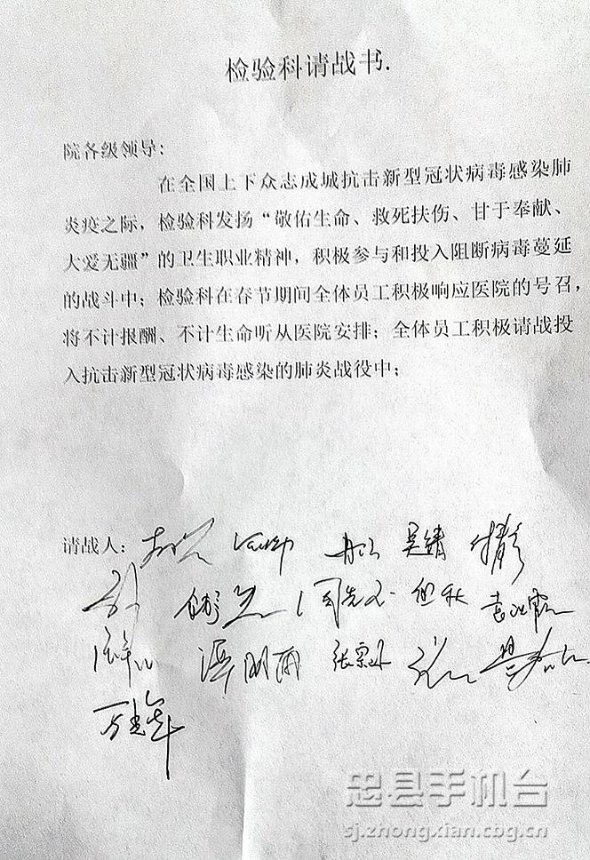 在万辉的带动下,全科室发扬“敬佑生命、救死扶伤、甘于奉献、大爱无疆”的精神,主动请战,积极加入到阻断病毒蔓延的战斗中。在科室医务人员紧缺的情况下,坚决服从医院安排,为支持忠县疾控核酸检测派出了两人进行支援。